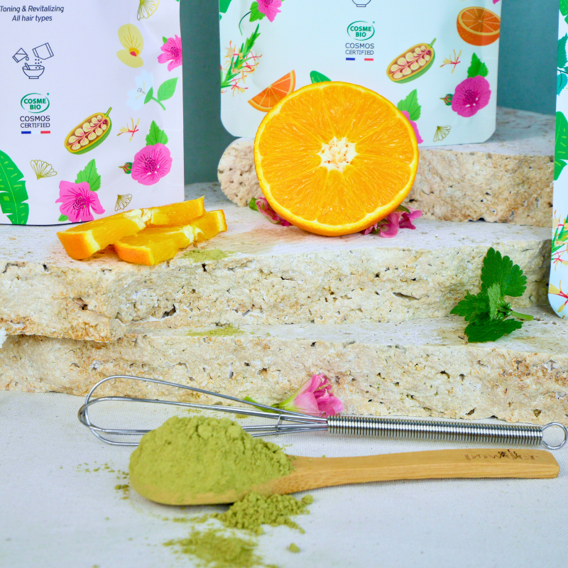 📦 Contient : Orange Bio + Ortie Bio + Brahmi Bio + fouet + cuillère