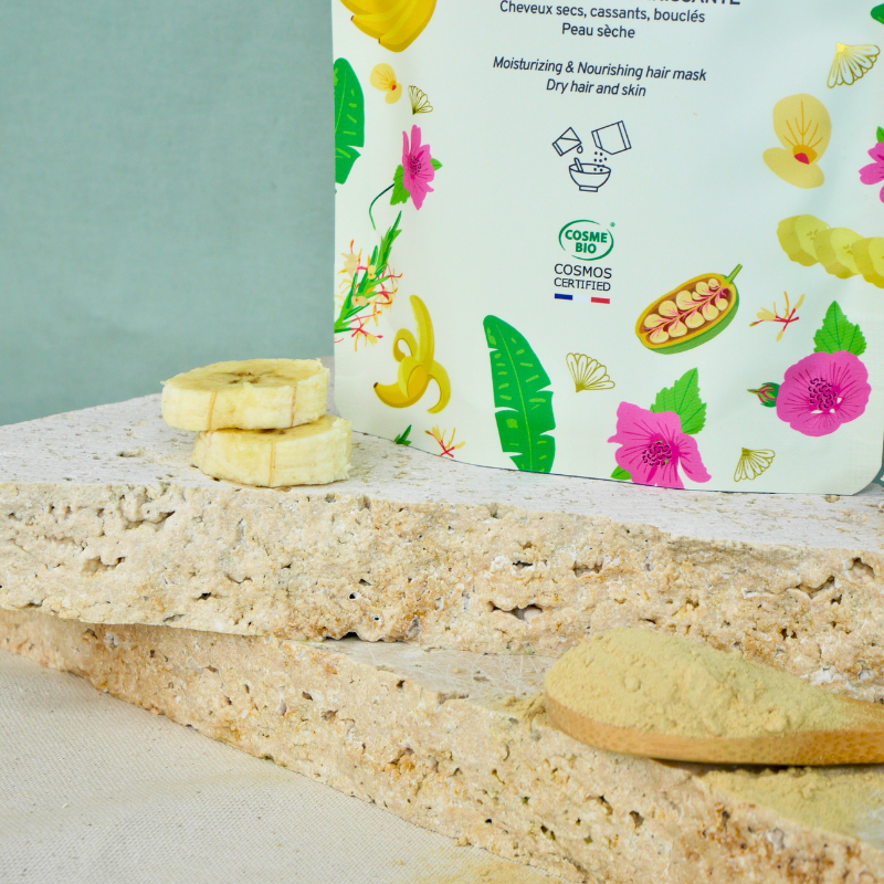 La poudre de Banane bio est un super-aliment pour les cheveux. Elle est riche en vitamines et minéraux qui aident à nourrir et renforcer les cheveux.
